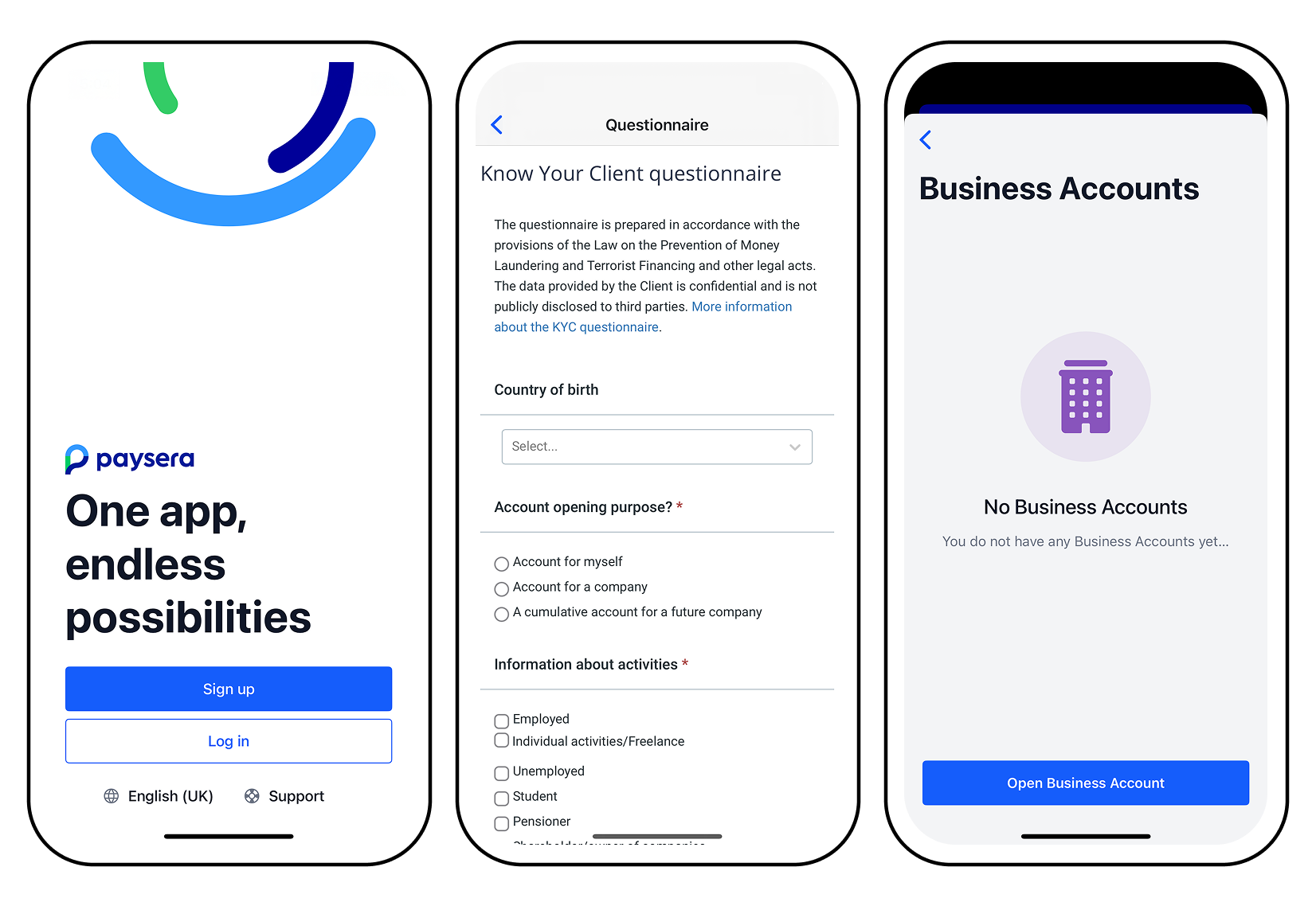 Набирателната сметка се открива от бъдещия управител или представляващия дружеството. За целта той трябва предварително да се регистрира в Paysera през мобилното приложение, да се идентифицира като физическо лице и да попълни Въпросник за клиента. След това изпраща по имейл искане за откриване на набирателна сметка.